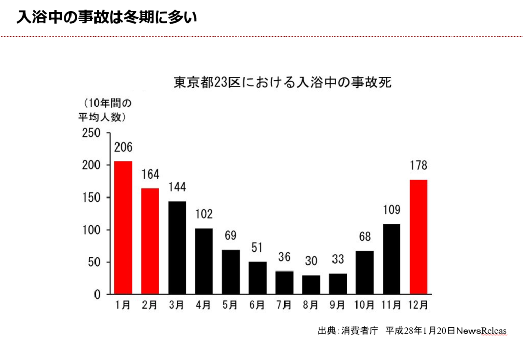入浴中の事故死の数と気温に相関がみられるという報告もある。