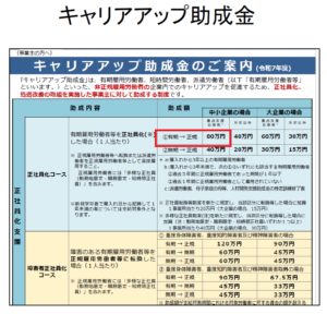 キャリアアップ助成金(正社員化に関する助成)で、80万円/人